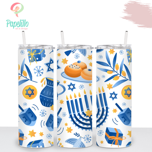 Hanukkah Tumbler, Happy Hanukkah Iced Coffee, Hanukkah Gift for Friend, Stainless Steel, Drinking Cups 20oz