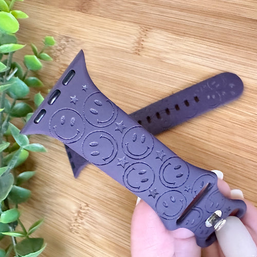 Happy Face watch Band engraved watch Band Personalized Retro Groovy Watch Band Monogrammed Silicone Band engraved watch band