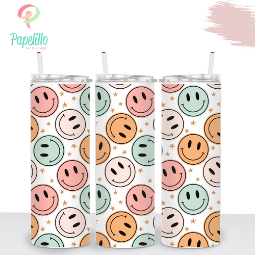 Retro Happy Smile Face Tumbler, Insulated Cup, Drinking Cups Personalized, Groovy Party Custom 20oz Tumbler Hot Cold Drinks, Stainless Steel